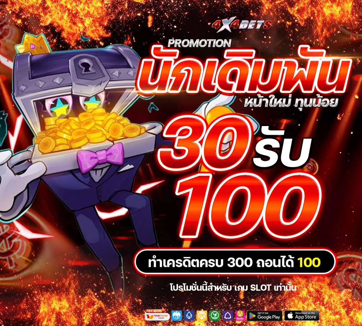 4x4bets จัดเต็มให้นักเดิมพันหน้าใหม่ทุนน้อย ฝาก 30 รับ 100